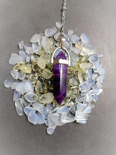 Cada uno vendrá en una bolsa de organza con información sobre cómo usar un péndulo.